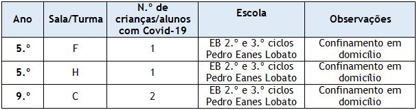 casos de alunos com Covid-19 nas escolas do Agrupamento.