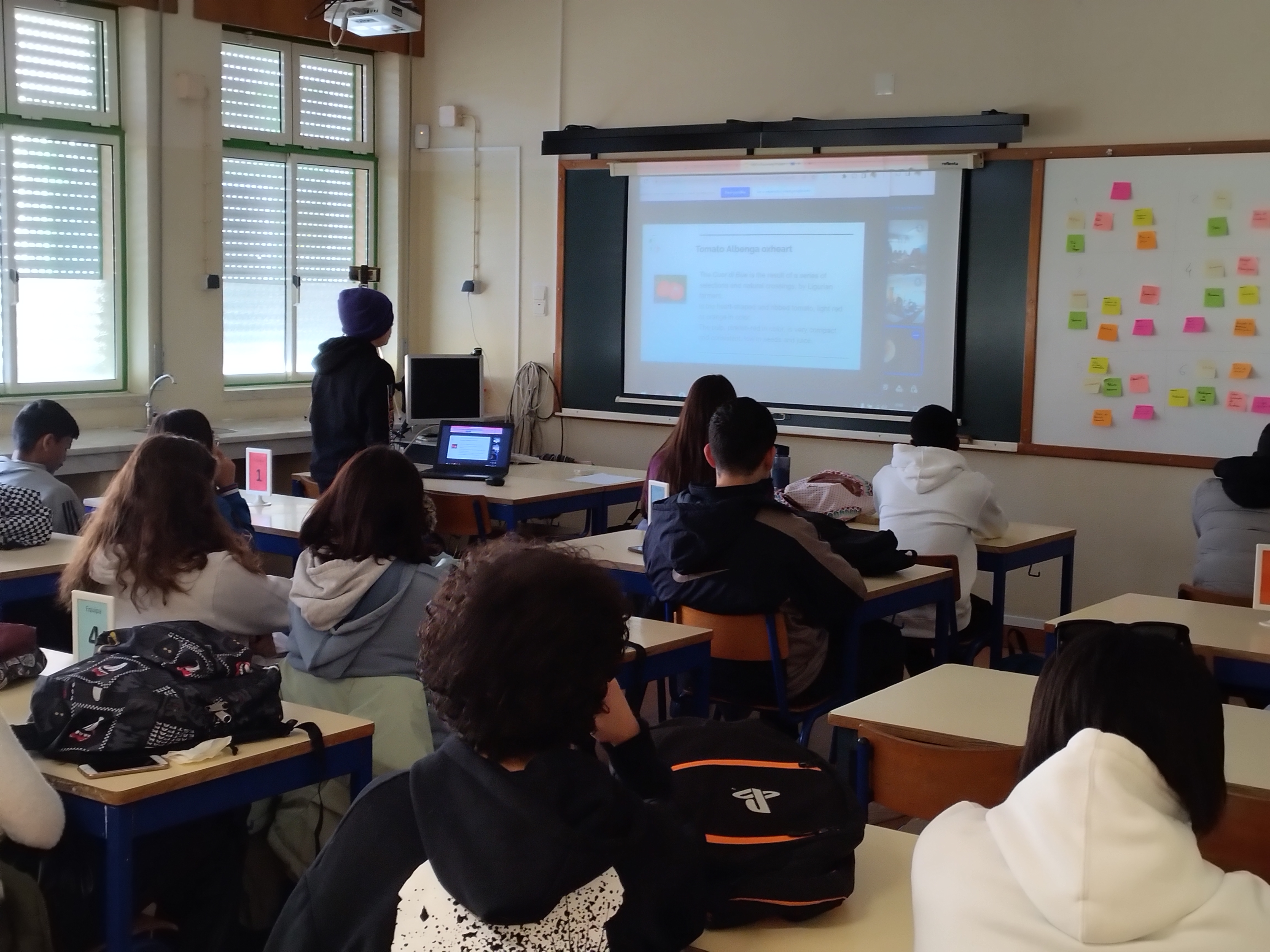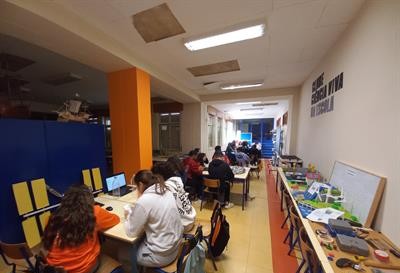 Foto de uma sessão de trabalho entre equipas de alunos de Portugal e de Itália - dia 20/fev