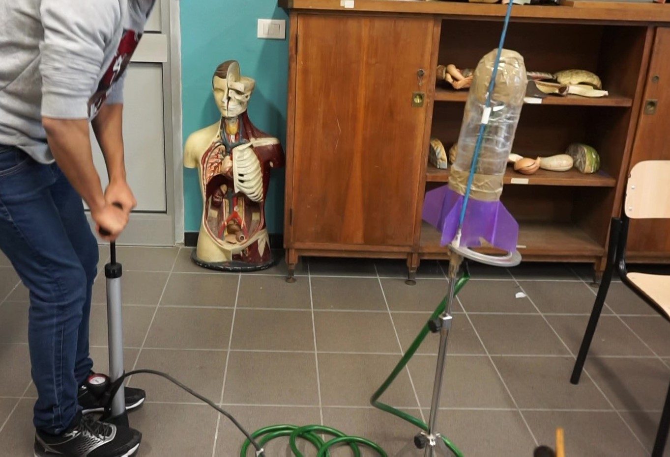 Foto de um protótipo dos foguetes de água a lançar feito pelos alunos italianos